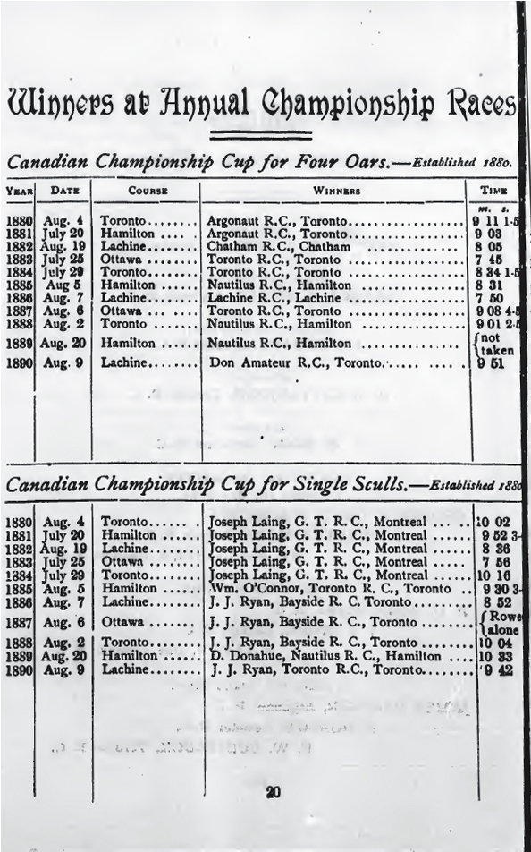 The Annual Regatta of the Canadian Association of Amateur Oarsmen and The Royal Canadian Henley Regatta Records